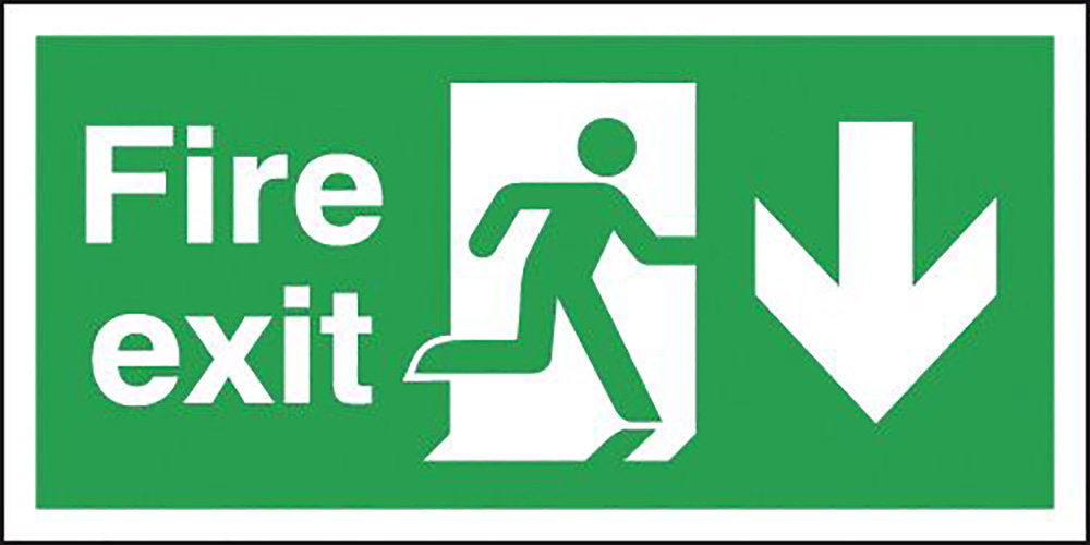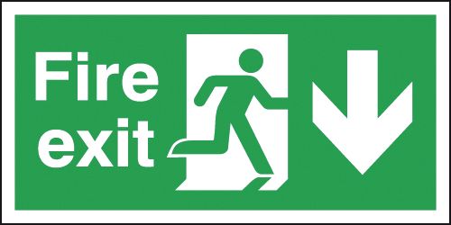 Fire Exit Running Man Arrow Down - Nite Glo Safety Sign Pack of 6