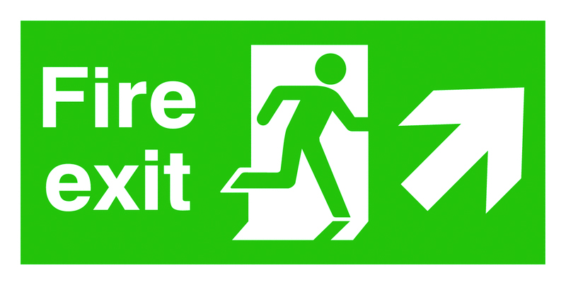 Fire Exit Running Man Arrow Up Right 1.2mm Rigid Plastic Safety Sign