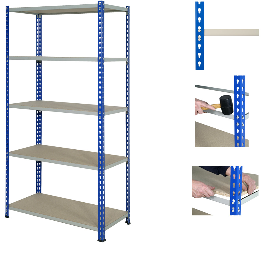 J Rivet Shelving 5 Levels c/w Chipboard Decks