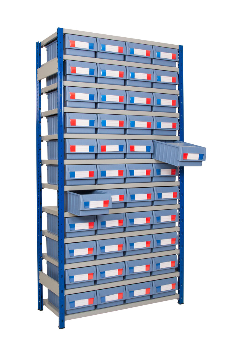 Shelf Trays on Racks Starter (2 uprights) or Extension (1 upright) Bay c/w Trays, Label and Shelf Stop Handle. 2000 x 1000mm (H x W).