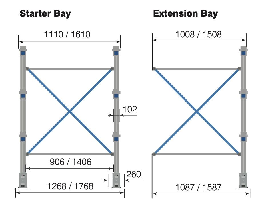 Cantilever racking is sold as standard 1000mm wide, it is also available at 1500mm wide.