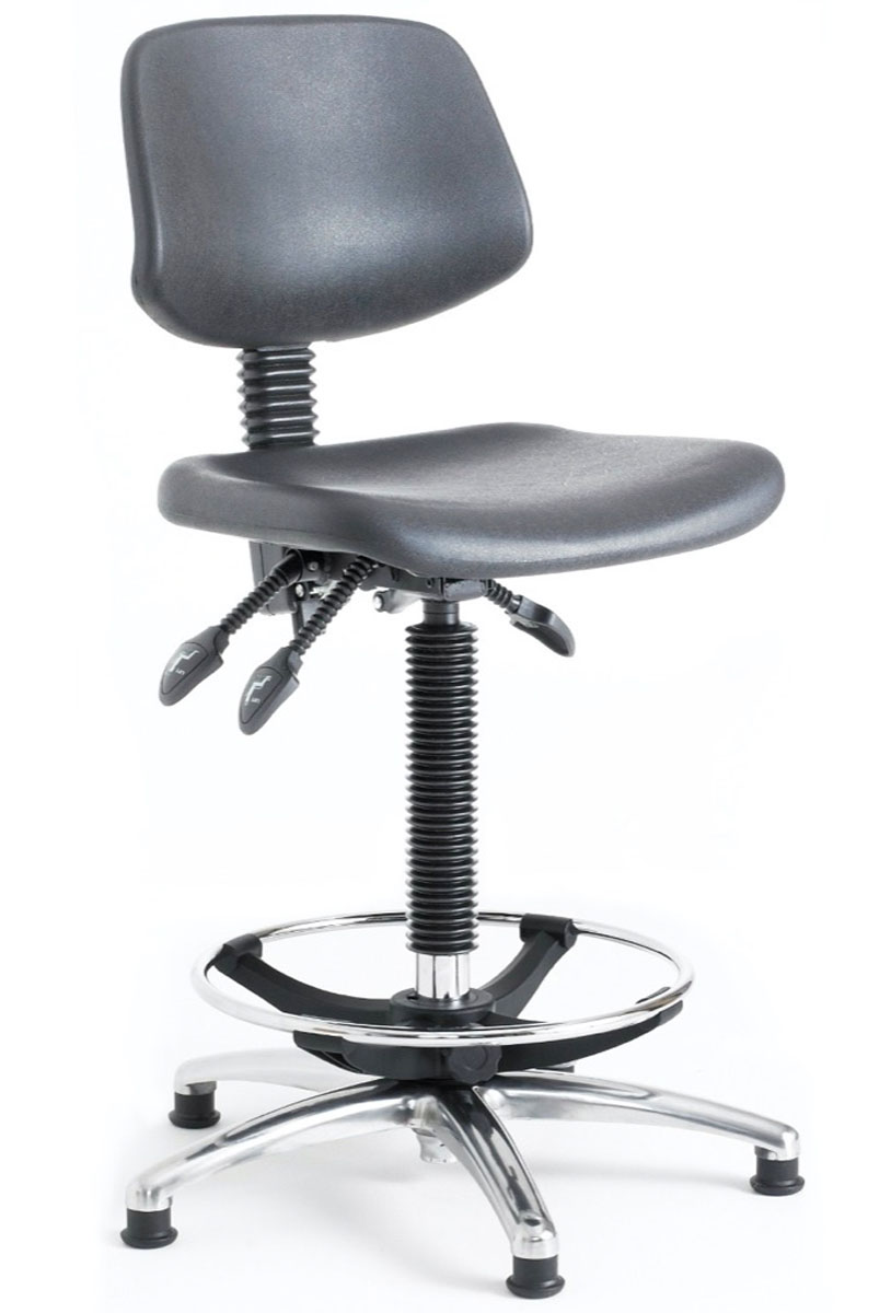 Contoured polyurethane seat and back (low chair) 470-600mm height adjustment